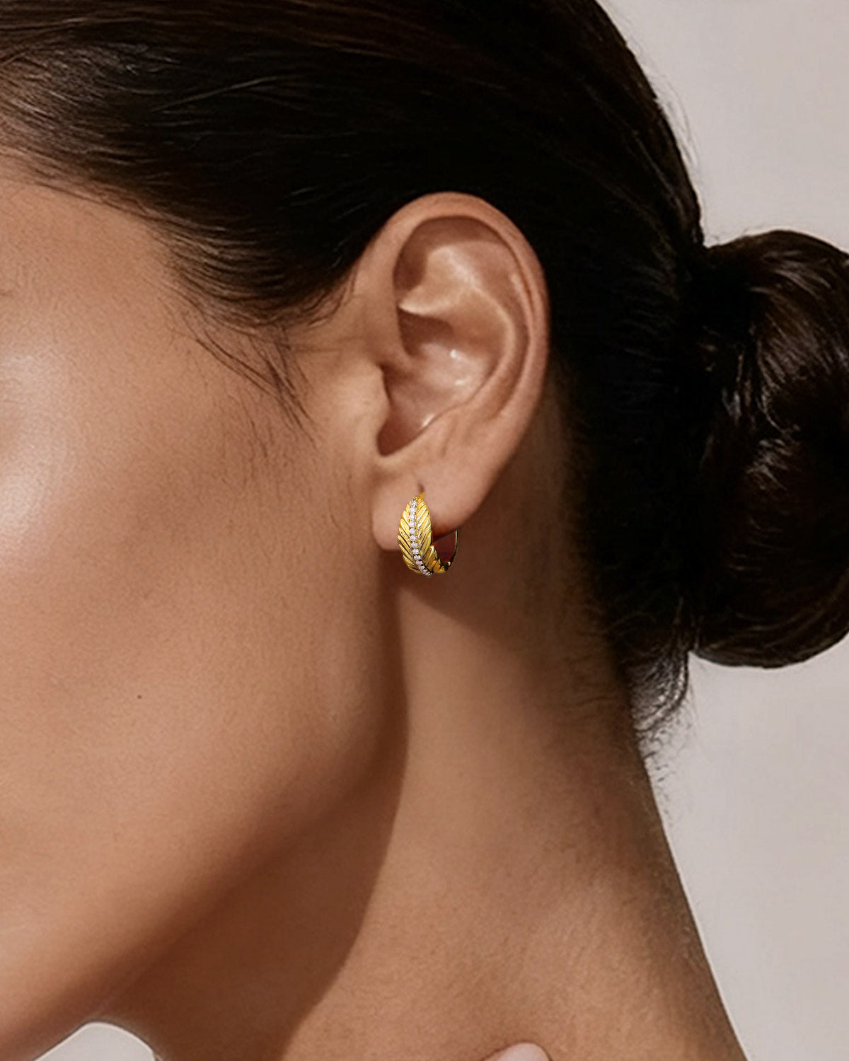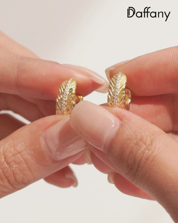 Daffany Curled Leaves Diamonds 14k/10K Solid Gold Hoop Earrings
