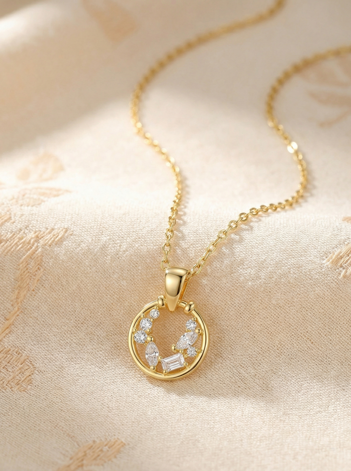 Daffany Circle Diamonds 14k/10K Solid Gold Pendant Necklace