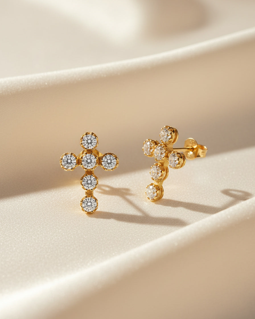 Daffany Cross 14k/10K Solid Gold Stud Earrings