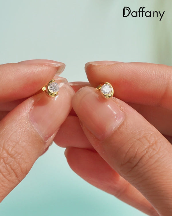 Daffany Delia Semi-Enclosed Diamond 14k/10K Solid Gold Stud Earrings