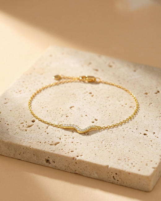 Daffany Diamond-Set Curve 14k/10K Solid Gold Bracelet