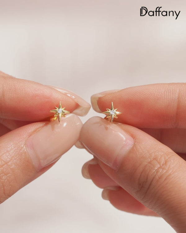 Daffany Eight-Pointed Star 14k/10K Solid Gold Stud Earrings