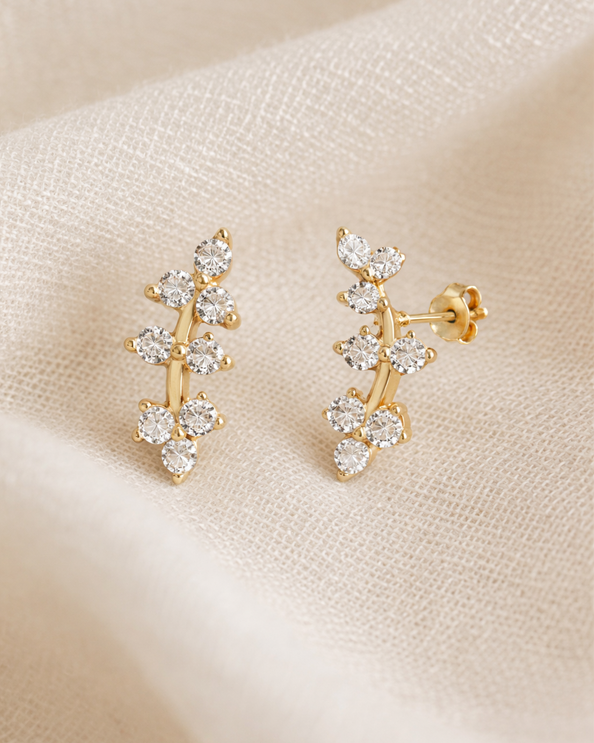 Daffany Eight Round Diamonds 14k/10K Solid Gold Stud Earrings