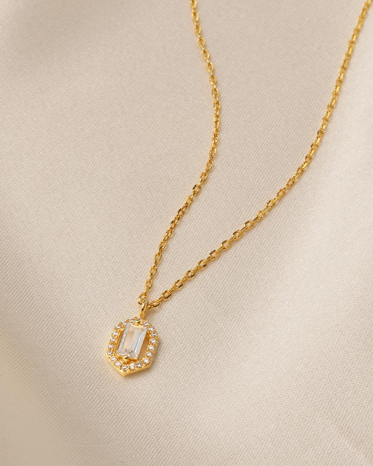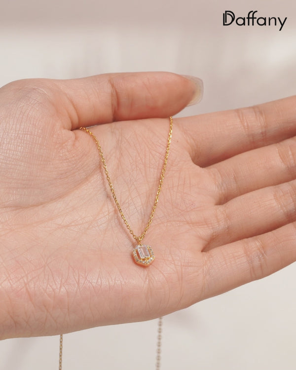 Daffany Rectangular Drill 14k/10K Solid Gold Pendant Necklace
