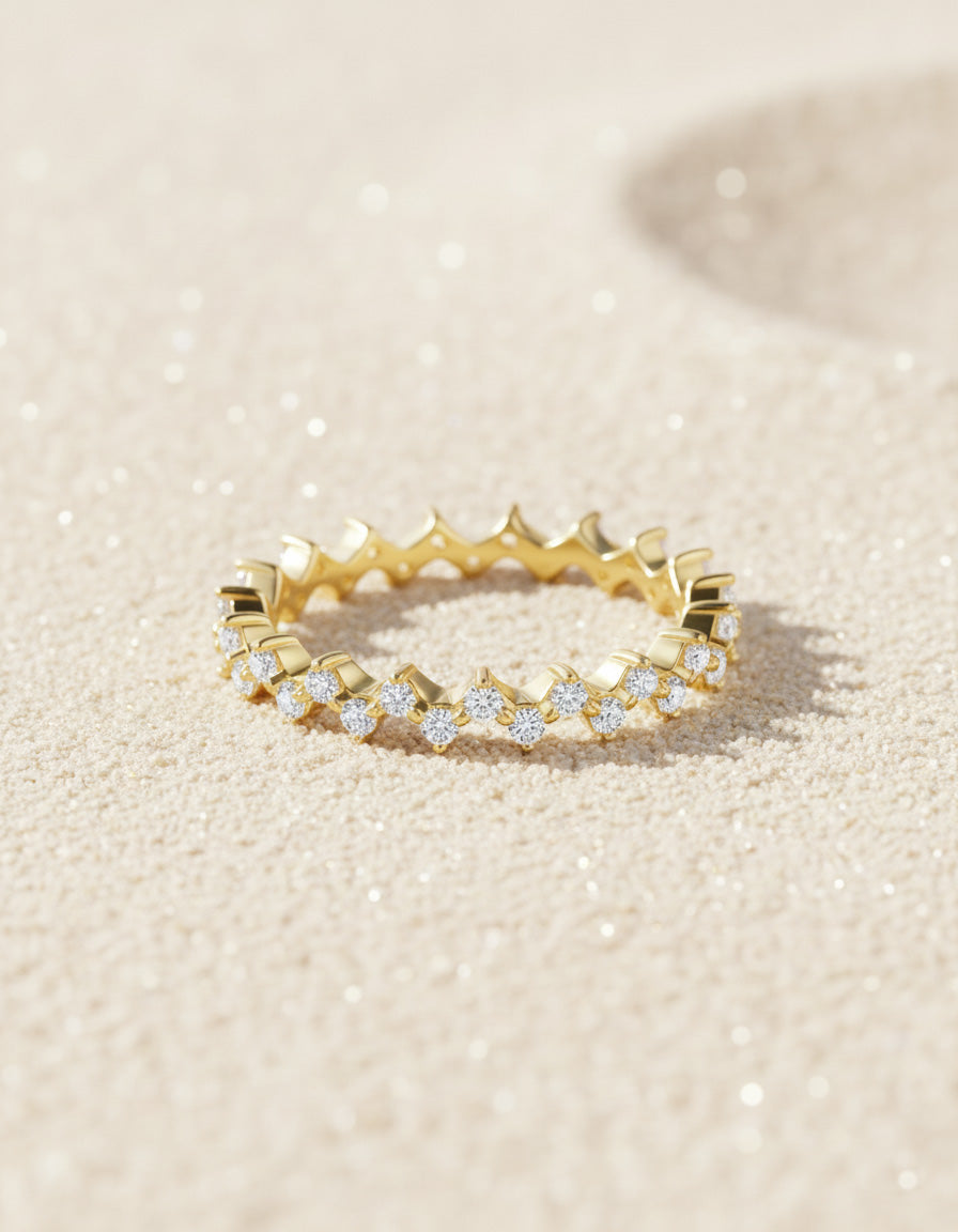 Meet the Sawtooth Shape Diamonds Ring, crafted in radiant 14k or 10k solid gold—a bold, contemporary piece with a striking jagged silhouette.Features a sawtooth-shaped band adorned with diamonds (or diamond-looking stones) that trace a zigzag pattern around the ring, creating dynamic sparkle from every angle.The angular, geometric design adds an edgy, modern edge to any outfit, whether worn alone or stacked with other rings.Elevate your jewelry collection with this Sawtooth Shape Diamonds Ring—choose 14k or 10k to fit your style, and enjoy a bold, contemporary centerpiece.