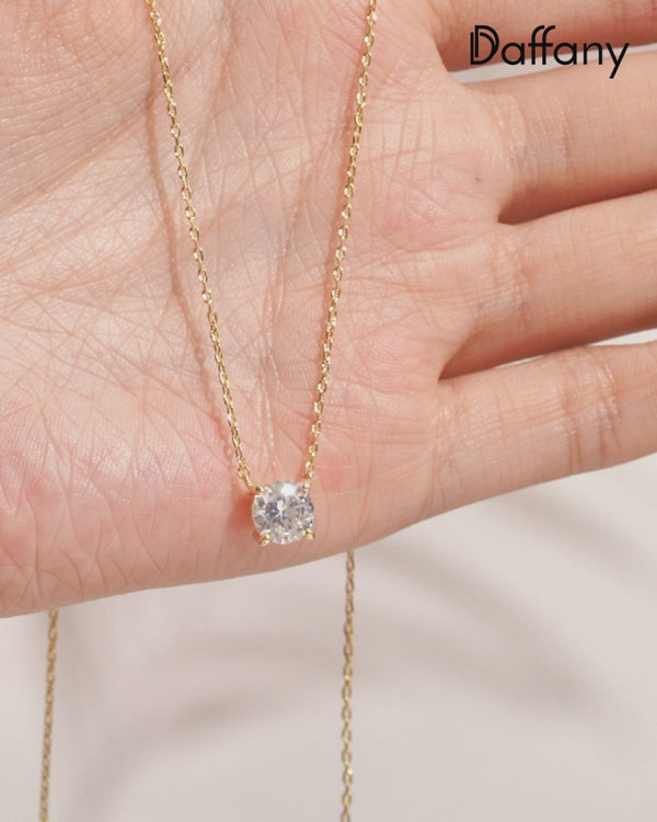 Daffany Single Diamond 14k/10K Solid Gold Pendant Necklace