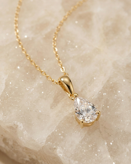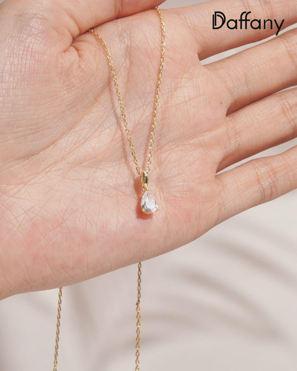 Daffany Single Teardrop-Shaped Diamond 14k/10K Solid Gold Pendant Necklace